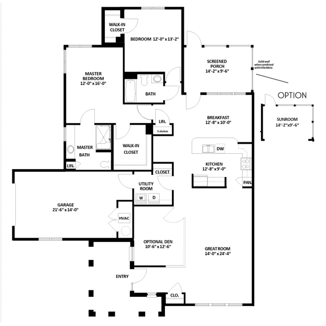 Our largest villa floor plan features two bedrooms plus an optional den, allowing you to enjoy an amenity-rich, maintenance-free lifestyle along with the privacy of your own entrance and garage — without sacrificing space.
